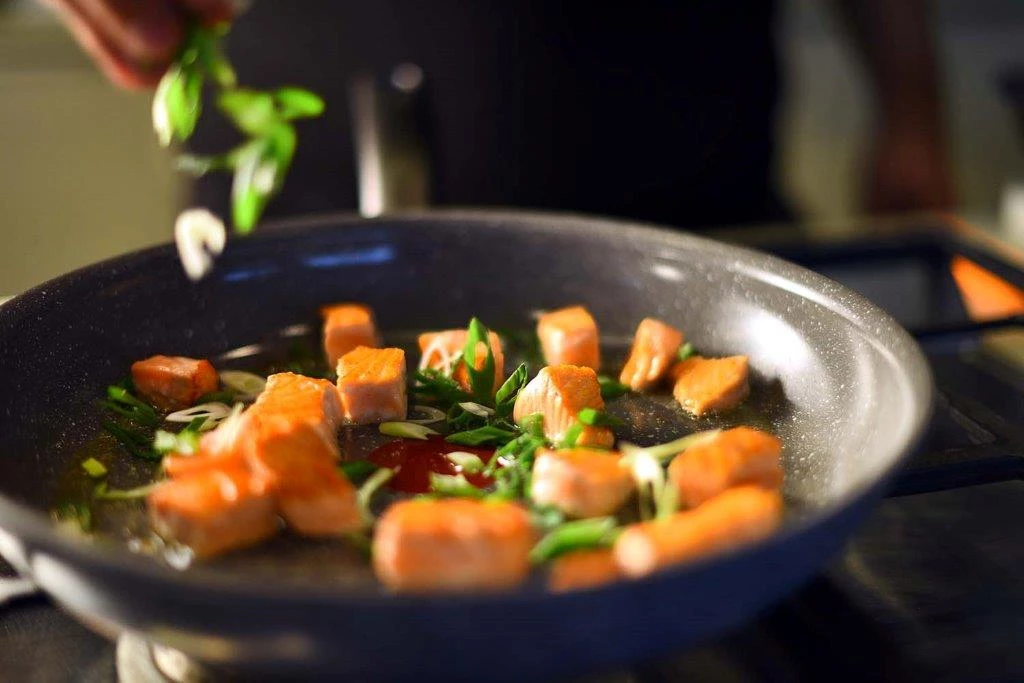 Ξαναβάζετε το Tefal Meteor σε δυνατή φωτιά και προσθέτετε το υπόλοιπο ελαιόλαδο.
