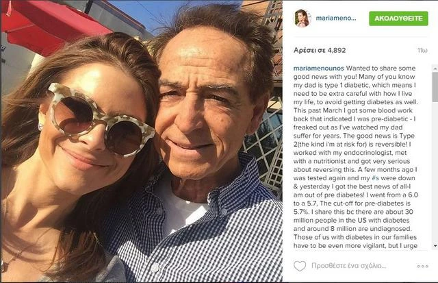 Ποστάροντας μια φωτογραφία με τον πατέρα της, η Μαρία Μενούνος αποκαλύπτει τη μάχη που δίνει με τον διαβήτη προσφέροντας ταυτόχρονα πληροφορίες και καλώντας τον κόσμο σε εξετάσεις πρόληψης.